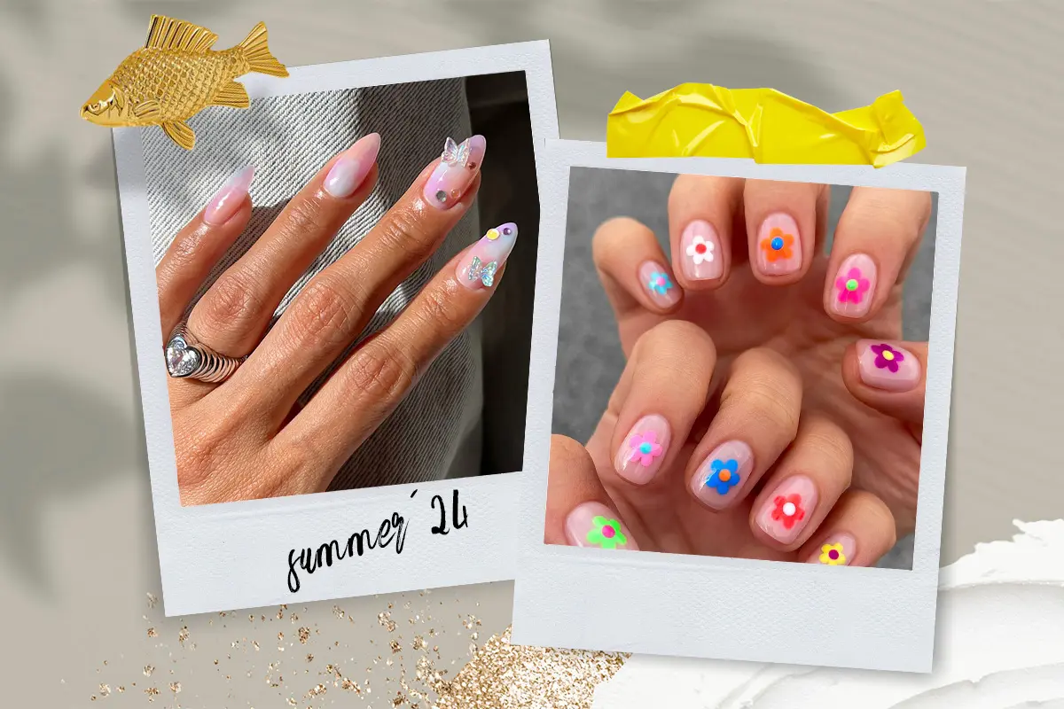 Да, маникюр с цветами – вечная летняя классика, однако увлечение новым сезоном «Бриджертонов» и мода на ногти с сухоцветом еще больше усилили этот тренд летом 2024 года. Кроме традиционной флористики, очень популярен цветочный френч. Объединив два дизайна в один, вы сможете создать что-то свежее и новаторское. Больше цветочных нейл-артов мы собрали здесь.