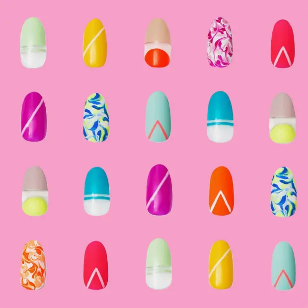 Те, кому надоел глиттер, металлик и шик 90-х и 2000-х, смело могут обращаться к графическому минимализму. Точки, тире, галочки, кружочки, полосы, параллели , треугольники – нехитрая геометрия на пике популярности (к слову, не только на ногтях но и в макияже). Единственное условие такого маникюра – меньше цвета: двух оттенков будет вполне достаточно.