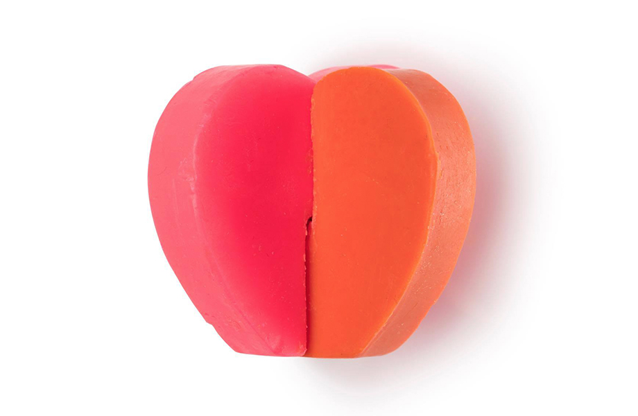 Средство для ванн Lush «Вместе навсегда» в виде сердца из двух разноцветных и соединенных вместе половинок – символический подарок. Входящие в состав афродизиаки – абсолю жасмина и розы, масло иланг-иланга – пробуждают чувственность. Масла арганы, миндаля, абрикосовых косточек ухаживают за кожей.
