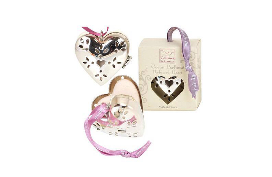 Ароматизаторы для дома в форме сердца есть у марки Collines de Provence. И выбор ароматов тут большой: «Нежный кашемир» с пряностями, миндалем, жасмином, сандалом; «Льняной цветок» с мимозой, ирисом, кедром, амброй; «Хлопковые облака» с черной смородиной, розой, фиалкой, мускусом; «Шелковое перышко» с мускатом, фиалкой, мимозой, ванилью; «Лепестки органди» с грейпфрутом, розой, жасмином и древесными нотами.