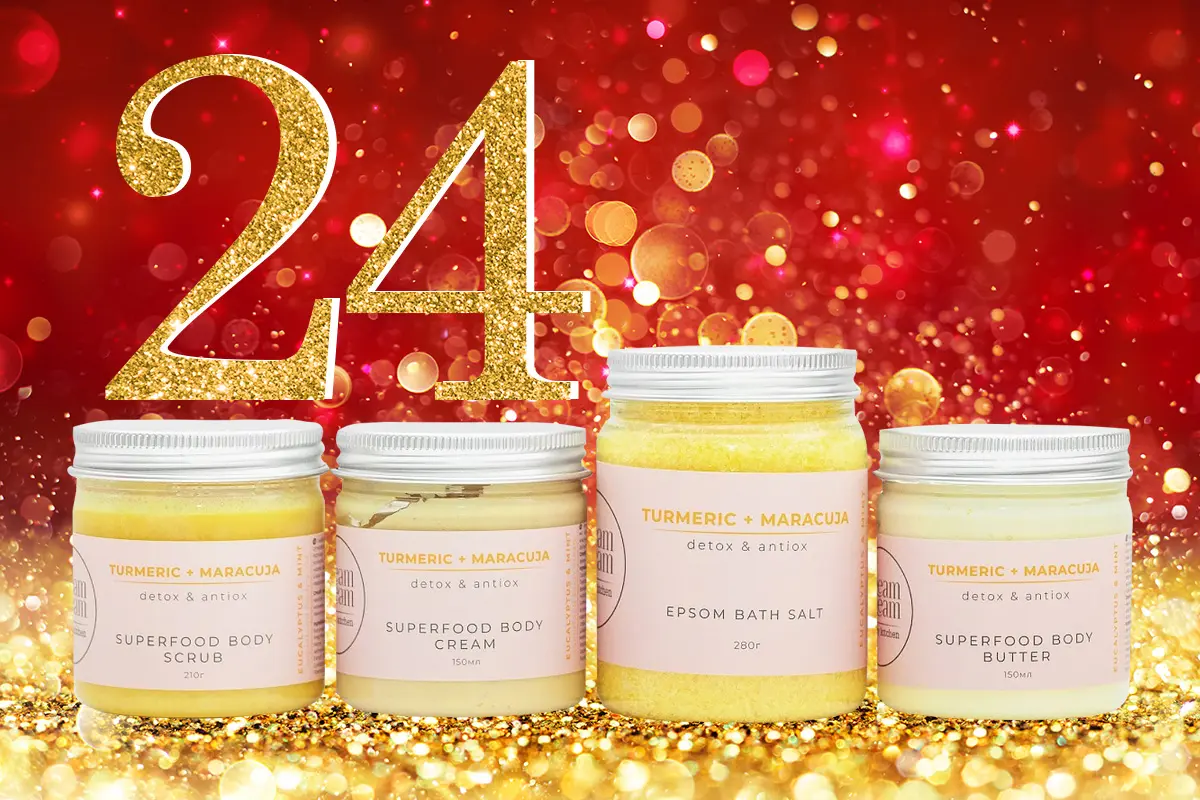 Украинский бренд натуральной косметики Cream Dream beauty kitchen представляет набор для ухода за телом с пудрой маракуйи и турмерики Detox + Antiox, который включает в себя четыре бьюти-средства: соль для ванн, скраб, взбитое масло и увлажняющий крем. Главными компонентами набора Detox + Antiox стали пудры маракуйи и турмерика, которые обладают мощным антиоксидантным действием, а также смягчают и делают кожу более эластичной. Superfood bath salt в объеме 280 г включает в себя английскую соль и соль Epsom, которые способствуют выведению из тела шлаков и токсинов, а также устраняют плохое самочувствие и преждевременное старение. Соль для ванн также содержит эфирные масла лемонграсса и мяты, которые снимают усталость и заряжают энергией. Superfood body butter, 150 мл, богат витаминами С и Е и имеет необычную текстуру взбитых масел карите и тыквы, которые питают и защищают кожу от негативного воздействия окружающей среды. Superfood body cream, 150 мл – это увлажняющий крем для тела с натуральными маслами, растительными экстрактами и эластином, который глубоко увлажняет, укрепляет и оказывает действие лимфодренажа. Superfood body scrub, 210 г насыщен солью Мертвого моря и суперфудами, которые в комплексе обновляют, отшелушивают омертвевшие клетки, улучшая кровообращение и оказывая глубокий детокс телу. Ориентировочная стоимость набора для тела 1100 грн.