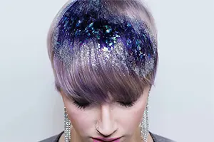 Затем в игру вступает «грубый, интенсивный, сияющий глиттер» – им стилист выделяет отдельные секции. Немного пудрового серебряного глиттера в качестве финиша и готово – можете блистать во всех смыслах этого слова.