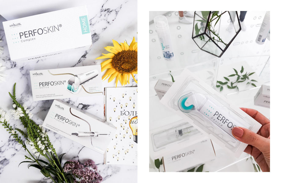 Perfoskin Device – устройство с роликом и иглами длиной 0,49 мм, которые проникают в кожу, доставляя туда нужное косметическое средство. За счет уколов они ускоряют микроциркуляцию и обменные процессы. И, естественно, помогают донести в нужные слои кожи активные ингредиенты.