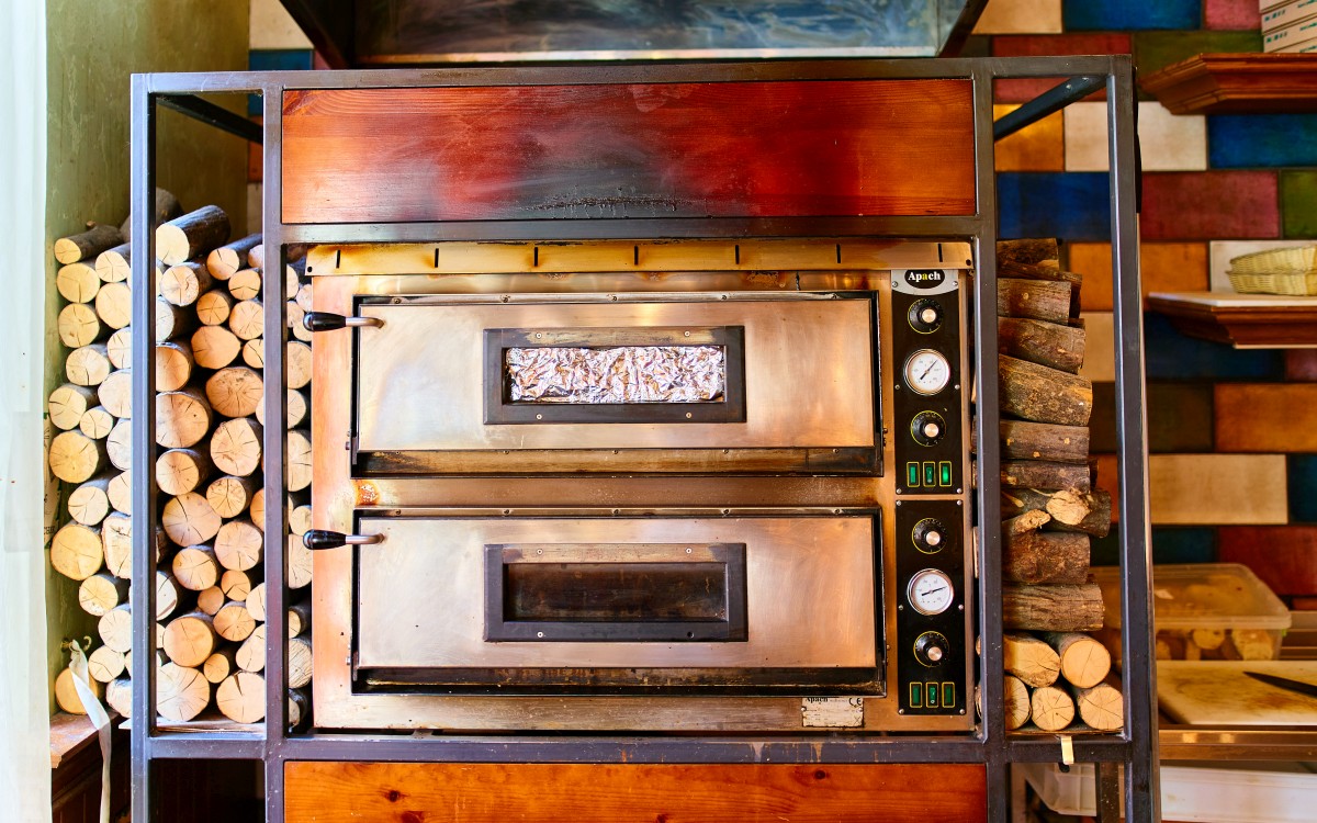 Первое, на что обращаешь внимание, когда переступаешь порог, – красочный интерьер в неаполитанском стиле, напоминающий об уютных итальянских кафе и ресторанах, с разноцветными оконными ставнями и яркой плиткой, клетчатыми занавесками, многочисленными деревянными полочками и шкафчиками, живыми цветами и зеленью. Еще больше атмосферности придают “съедобные” элементы декора: баночки маслин, бутылки итальянского вина, пачки муки и консервированные томаты.