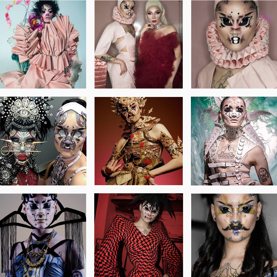 Что известно про художника-визажиста Hungry – исполнителя удивительного макияжа Бьорк в ее последнем клипе Blissing Me, кроме обрывков информации в социальных сетях? Вот что нам удалось выяснить: он из Германии, изучал дизайн одежды в Берлине, работал с Вивьен Вествуд в Лондоне, называет собственный уникальный арт-бренд «искаженный дрэг», себя же называет «жемчугографом».