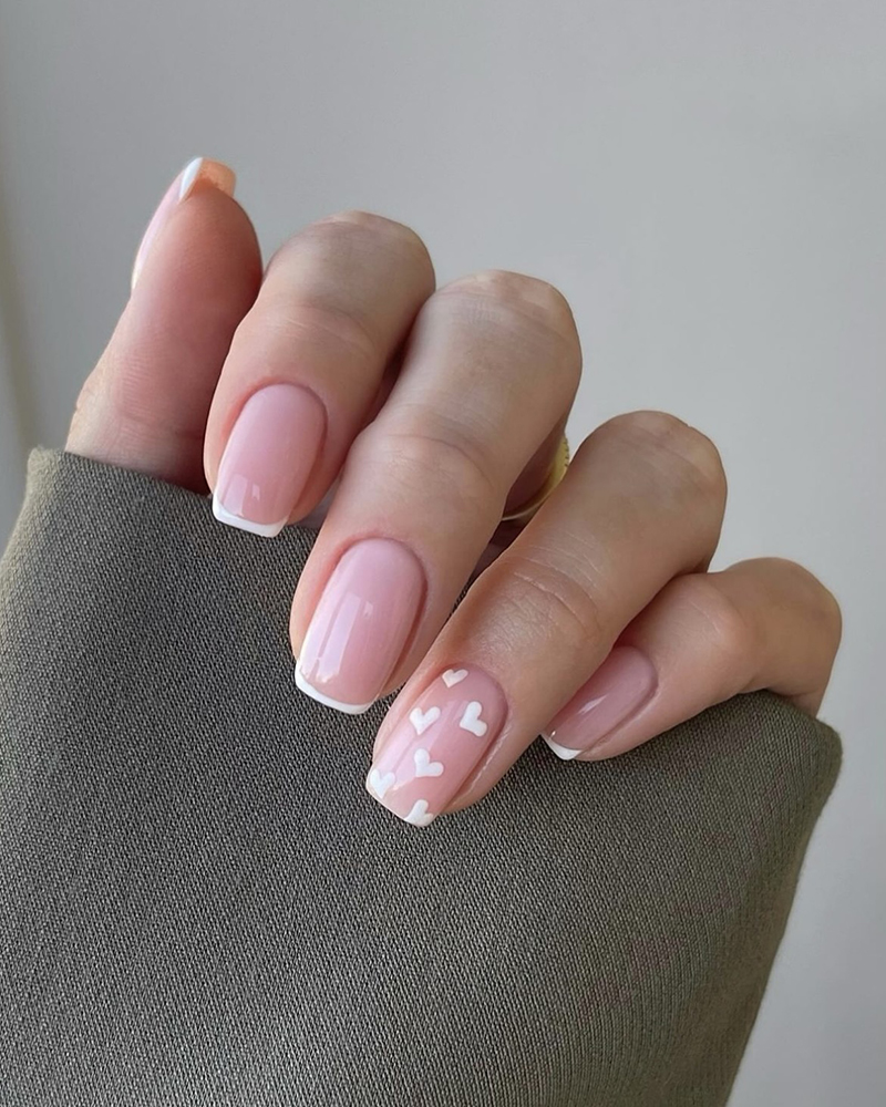 Белый френч – любимая вечная классика, которая в последние годы приобрела множество современных решений. Кроме традиционных кончиков в виде сплошных белых полосок, попробуйте вариации с тонкими трендовыми и двойными линиями, сердечками или цветами.