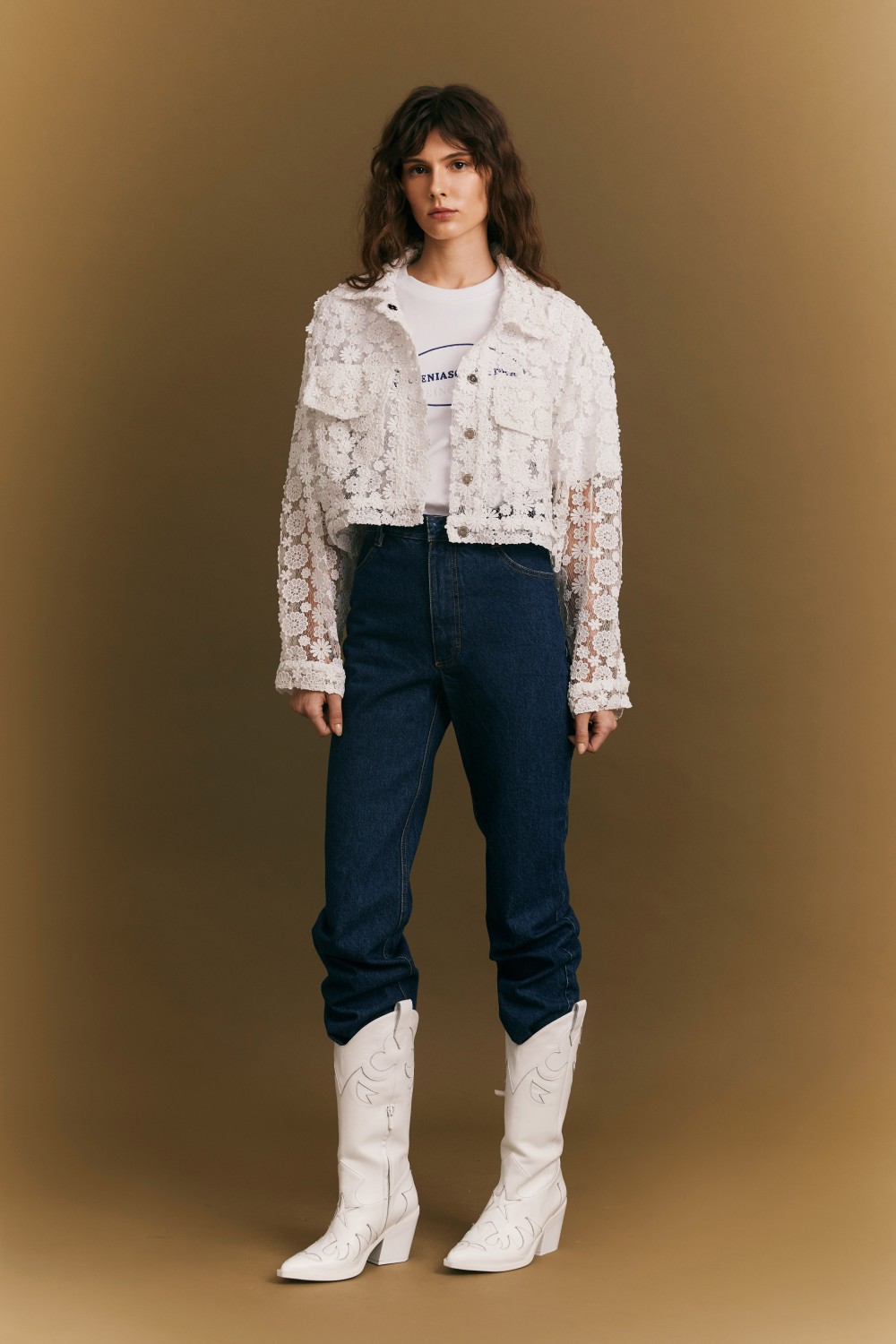 В коллекции присутствуют классические для бренда вещи в технике upcycling, а также запоминающиеся джинсы. Новая модель Wader Jeans вдохновлена рыбацкими сапогами, которые еще называются «заброды», уже покорила Instagram.