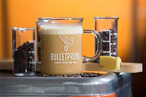 Bulletproof coffee – это микс черного кофе, масла и триглицеридов со средней цепью (MTC oil), последние получают из нерафинированных кокосового и пальмового масел. Напиток принадлежит бренду Bulletproof, производящему продукты для здорового образа жизни и похудения. Создатель марки пришел к этой идее после поездки в Тибет, где ежедневно выпивал по десять чашек зеленого чая с маслом яка и солью, который, по его словам, заметно повышает уровень энергии. По возвращению в Лос-Анджелес он модернизировал его, заменив чай наименее токсичным сортом кофе, масло яка – несоленым сливочным маслом (вместо него можно использовать топленое гхи) и добавил MTC, положительно влияющее на мозговую деятельность и метаболизм.