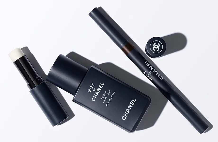 В линейке Boy de Chanel есть тональный флюид для четырех типов кожи (различных оттенков), а также четыре вида карандаша для бровей.