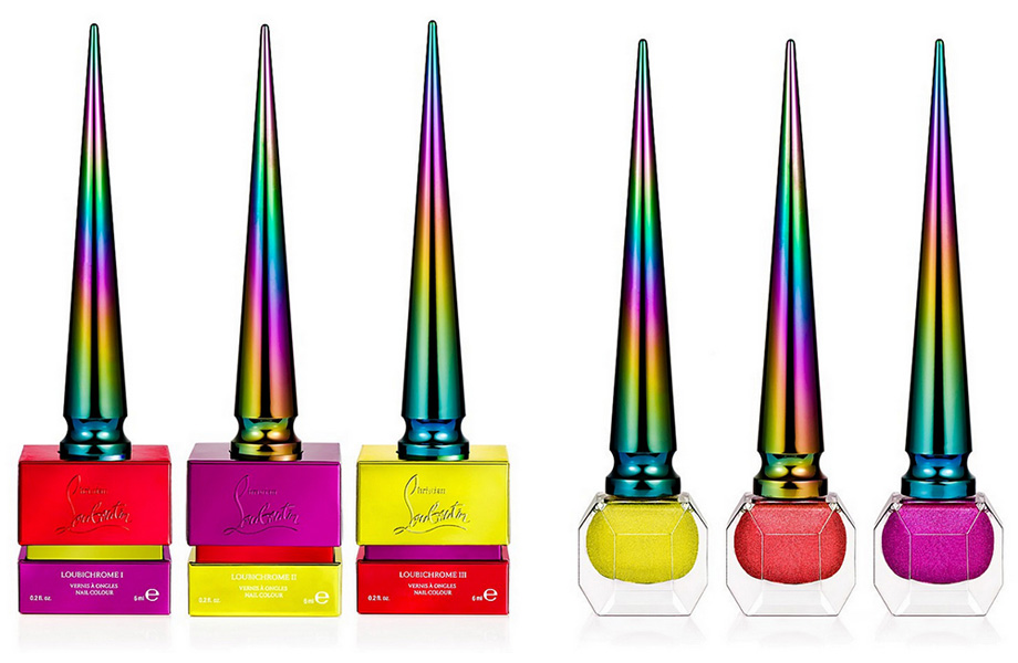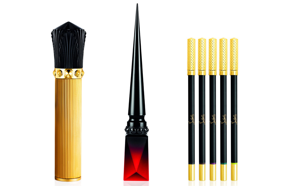 В этом году марка Christian Louboutin представила две большие новинки. Первая – хромированные лаки Loubichrome. Их легко узнать по ярким оттенкам и переливающимся всеми цветами радуги колпачкам. Вторая новинка – коллекция декоративных средств для глаз. Тут лайнер трех оттенков (черного, синего и лубутеновского красного) тоже с колпачком в виде каблука. Есть черная и цвета бургунди тушь в необычном тюбике, будто египетский обелиск сделали в стиле ар-деко. Плюс стойкие карандаши для век (желтый, синий, сливовый, коричневый, черный) и карандаши для бровей четырех натуральных оттенков.