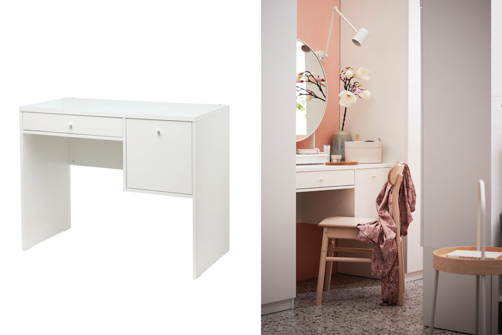 Какая девушка не мечтает о собственном уголке красоты, чтобы всегда иметь под рукой все необходимое для своих утренних сборов и вечерних бьюти-процедур? Туалетный столик – идеальное решение. Косметические принадлежности можно спрятать в выдвижных ящиках, а на сам стол поставить красивые органайзеры с мелкими украшениями, кистями для макияжа и любимыми флаконами парфюмов. Минималистический дизайн в белом цвете подойдет под любой стиль помещения.