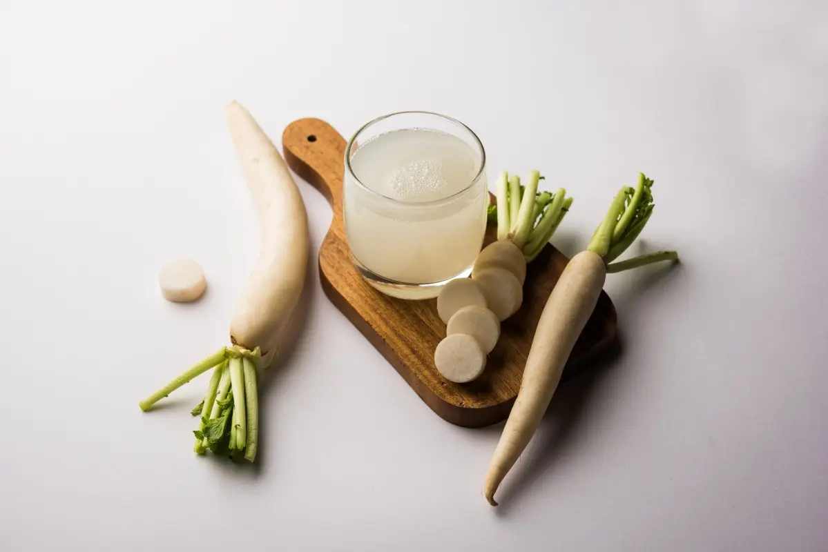 Если вас беспокоит вздутие живота, дискомфорт после еды, следует добавить в рацион сырой дайкон. Он содержит пищеварительные ферменты, подобные содержащимся в человеческом организме, благодаря чему облегчает расщепление белков и углеводов. Японская редька также стимулирует выработку желудочного сока, благодаря чему пища быстрее и эффективнее переваривается и усваивается организмом.