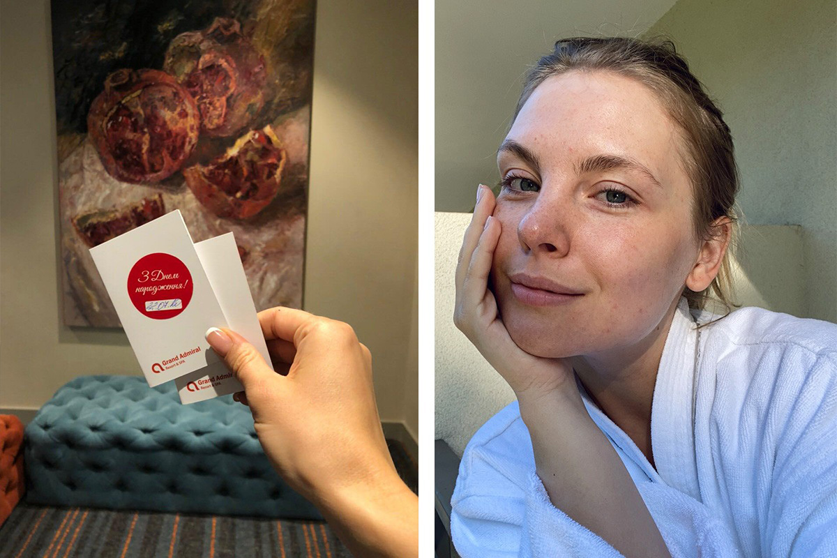 Меня ждал стильный двухкомнатный номер с элегантным дизайном: мебель из натурального дерева, льняные шторы, белоснежное сатиновое постельное белье и много подушек. Приятно удивило наличие двух уютных балконов и мини-буфета с капсульной кофемашиной, чайным набором и хорошим выбором вина с бокалами Riеdle (знатоки оценят). Меня, как главу бьюти-издания, очень порадовал банный набор косметики британского бренда Molton Brown. Гель для душа с ароматом Fiery Pink Pepper – просто волшебный.