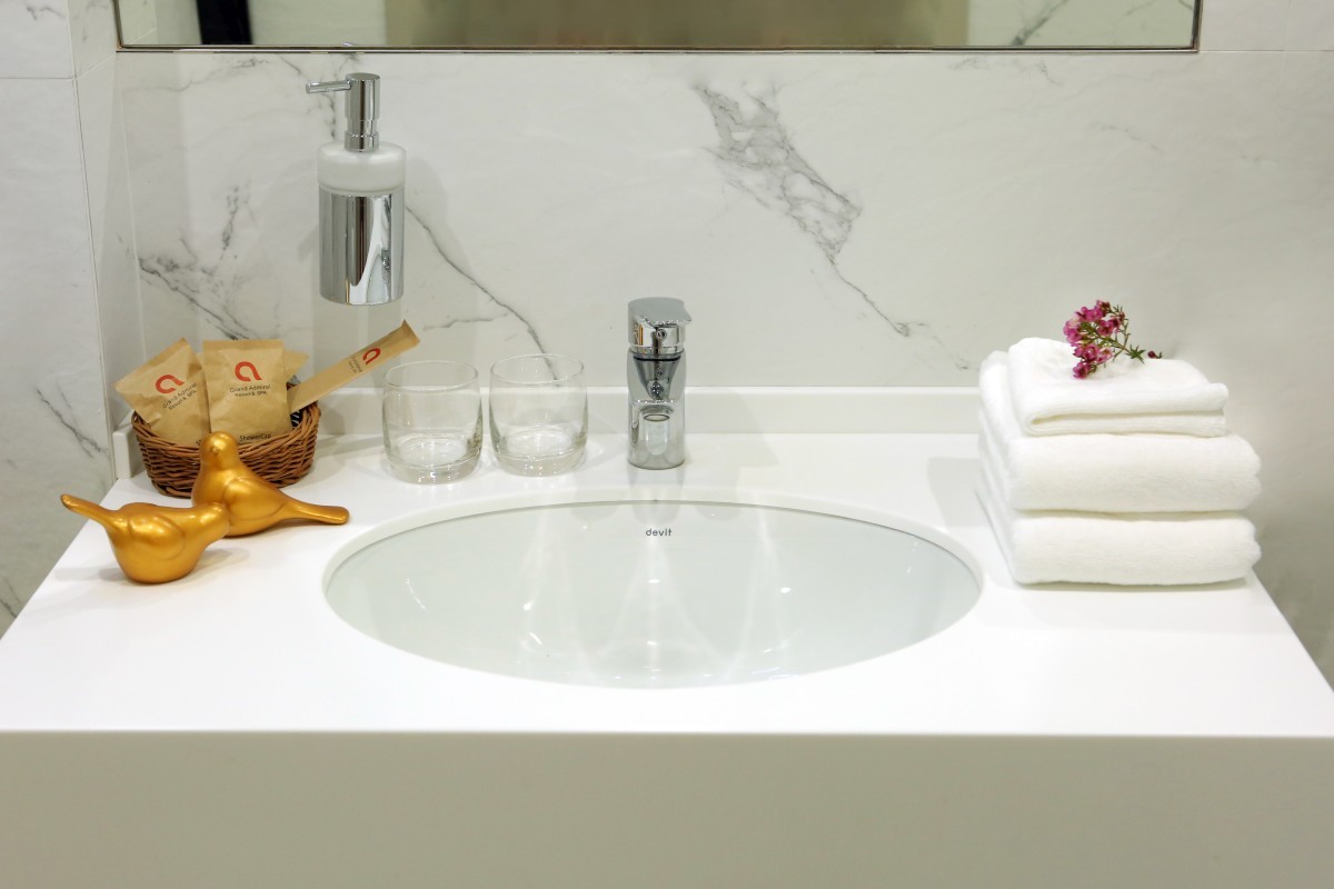 Меня ждал стильный двухкомнатный номер с элегантным дизайном: мебель из натурального дерева, льняные шторы, белоснежное сатиновое постельное белье и много подушек. Приятно удивило наличие двух уютных балконов и мини-буфета с капсульной кофемашиной, чайным набором и хорошим выбором вина с бокалами Riеdle (знатоки оценят). Меня, как главу бьюти-издания, очень порадовал банный набор косметики британского бренда Molton Brown. Гель для душа с ароматом Fiery Pink Pepper – просто волшебный.