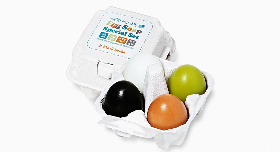 Мини-контейнер с разноцветными яйцами – это набор мыла-масок Holika Holika. Ими можно умываться как мылом, а время от времени использовать в качестве маски для лица. Чтобы мыло стало маской, его нужно смочить теплой водой, взбить плотную пену, нанести на кожу, массируя, пока пена не станет кремом, затем оставить на 10-15 минут, после чего смыть теплой водой. Маска очищает, увлажняет и освежает. Выбирать «яйца» советуют по цвету: черное с древесным углем предупреждает появление воспалений, зеленое с зеленым чаем сужает поры, коричневое с красной глиной успокаивает сухую кожу, белое с яичным белком матирует.
