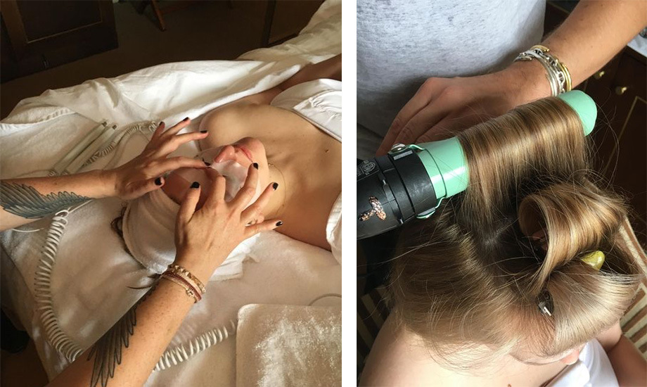 Далее стилист Томми Бакетт нанес на влажные волосы актрисы aнтифриз-крем Garnier Fructis Style Smooth Blow Cream, чтобы сделать их послушными. Затем накрутил локоны Элизабет на крупные бигуди и зафиксировал спреем Garnier Fructis Flexible Control.