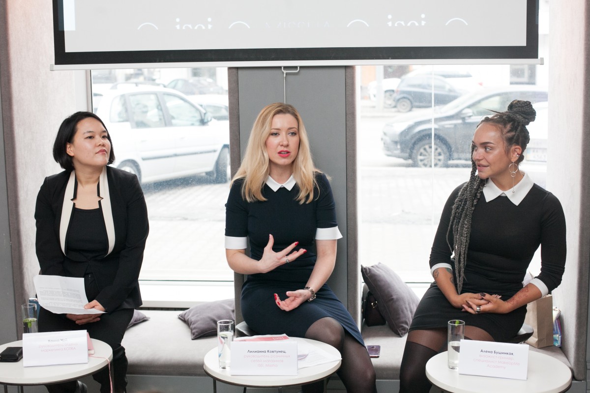 Сегодня создавать свой собственный покупательский опыт — это стратегия бренда, поэтому новый магазин полностью повторяет концепт корейского Missha: ассортимент и дизайн-решения. Пресс-бранч проводили руководитель розничной сети ISEI Лилианна Ковтунец, руководитель маркетингового отдела KOTRA Ханна Чой и визажист-гример MakeUpMe Academy Алена Бушинская.