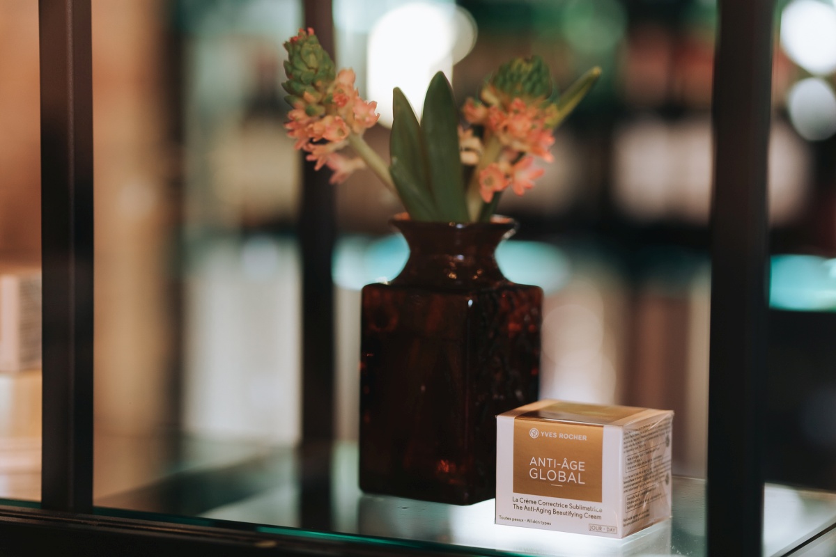 28 марта в ресторане KAMA Unique Asia состоялась презентация антивозрастной гаммы Anti-Age Global французского бренда Yves Rocher. Представлять новую омолаживающую коллекцию для лица приехали специальные спикеры: Филипп Мсика — директор отдела научных исследований и инноваций, а также Матье Эрре — директор по научным коммуникациям. Линейка Anti-Age Global представлена пятью новыми средствами, которые подходят для всех типов кожи, рекомендованный возраст использования с 35 лет. Омолаживающая эссенция Emblématique Supra Essence Correctrice, дневной крем Emblématique Crème Correctrice Sublimatrice-Toutes peaux — Jour, ночной крем La Crème Correctrice Confort-Toutes peaux — Nuit, крем для контура глаз Le Soin Illuminateur — Regard и корректор от пигментных пятен — Le Concentré Anti-Taches призваны разглаживает морщины, делать кожу более упругой и эластичной, активизировать процессы регенерации, выравнивать цвет и рельеф, а также возвращать естественное сияние. Спич Филиппа Мсика, а затем и Матье Эрре начался с еще одного приятного события для бренда Yves Rocher — празднования юбилея, 60 лет в индустрии красоты!
