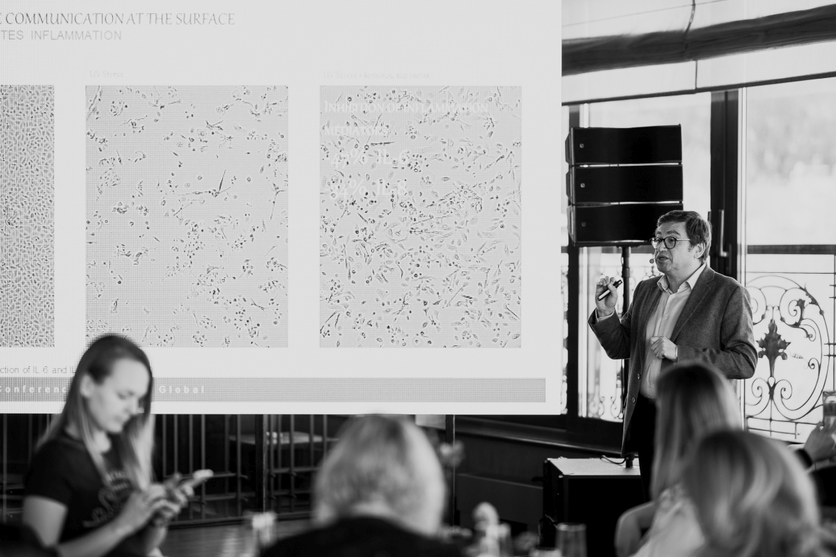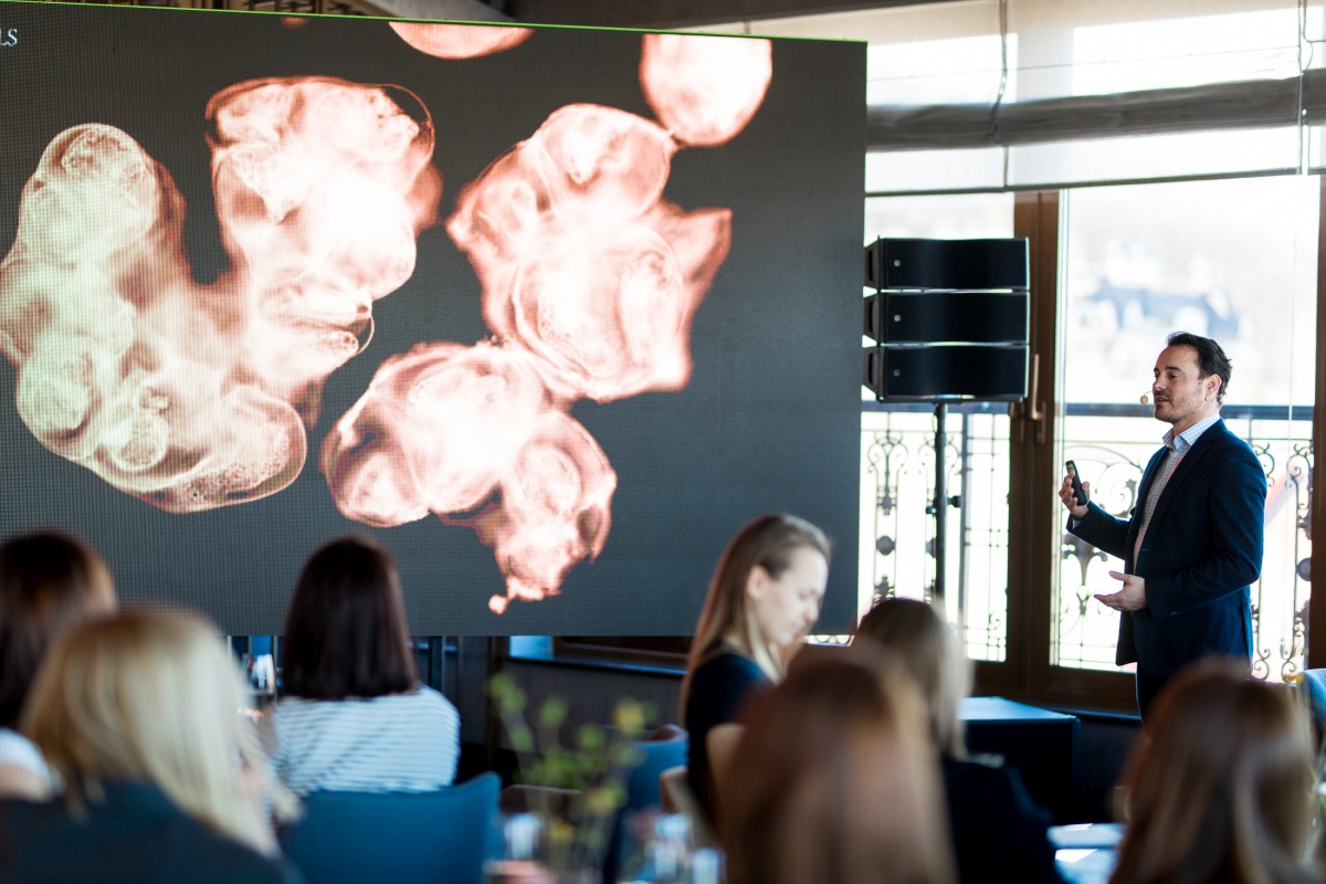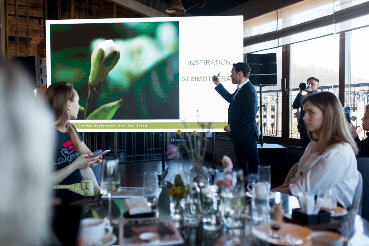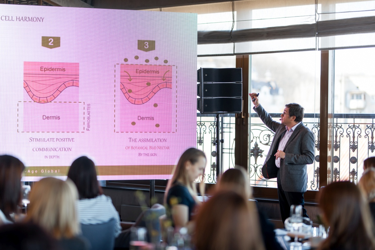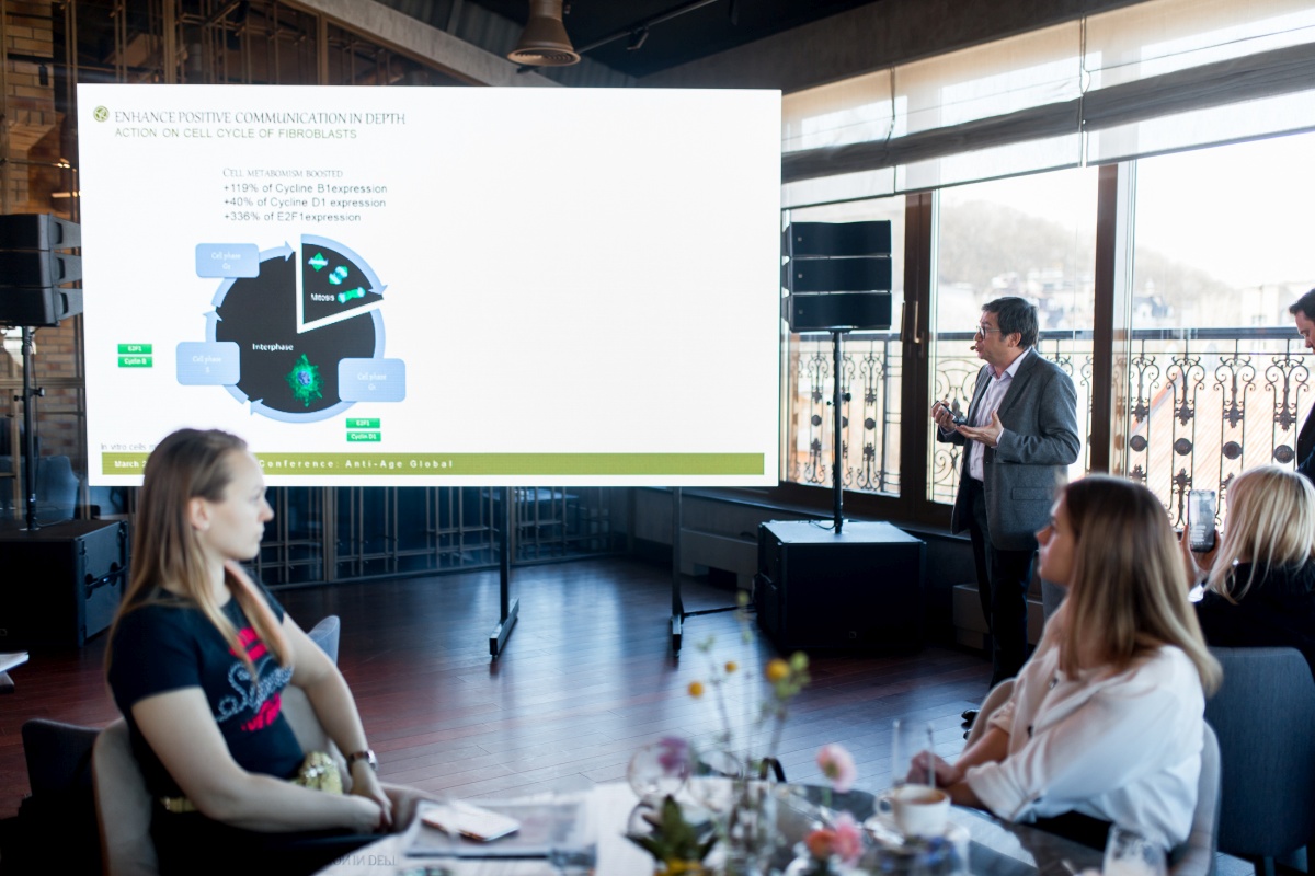 Перед началом непосредственной презентации новых омолаживающих продуктов, спикеры еще раз напомнили, что клетки кожи обладают способностью к самообновлению, они могут перемещаться по кожной ткани, создавать материал для ее строения и обмениваться информацией для ее правильного функционирования. Возраст и стрессы негативно воздействуют на функции клеток и нарушают процесс их жизнедеятельности. Таким образом, клеточное обновление замедляется, становится нерегулярным и менее качественным.