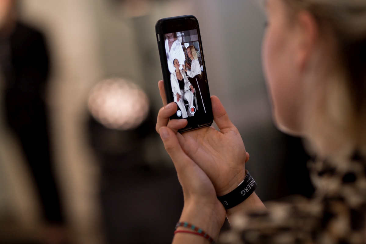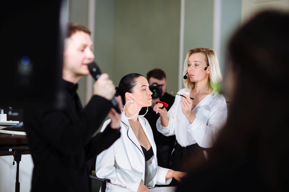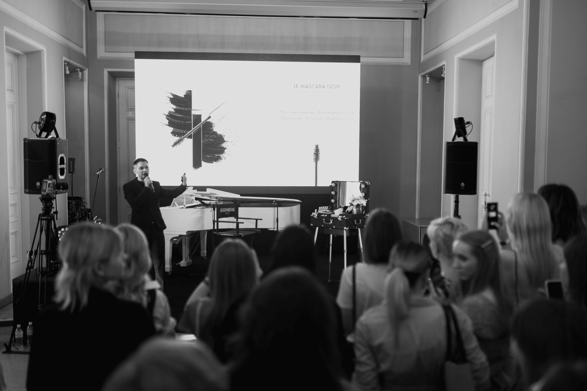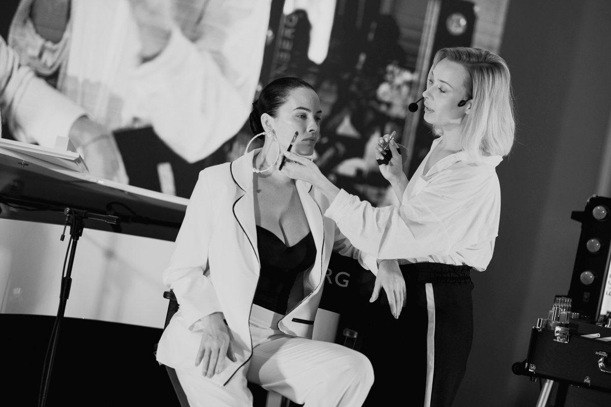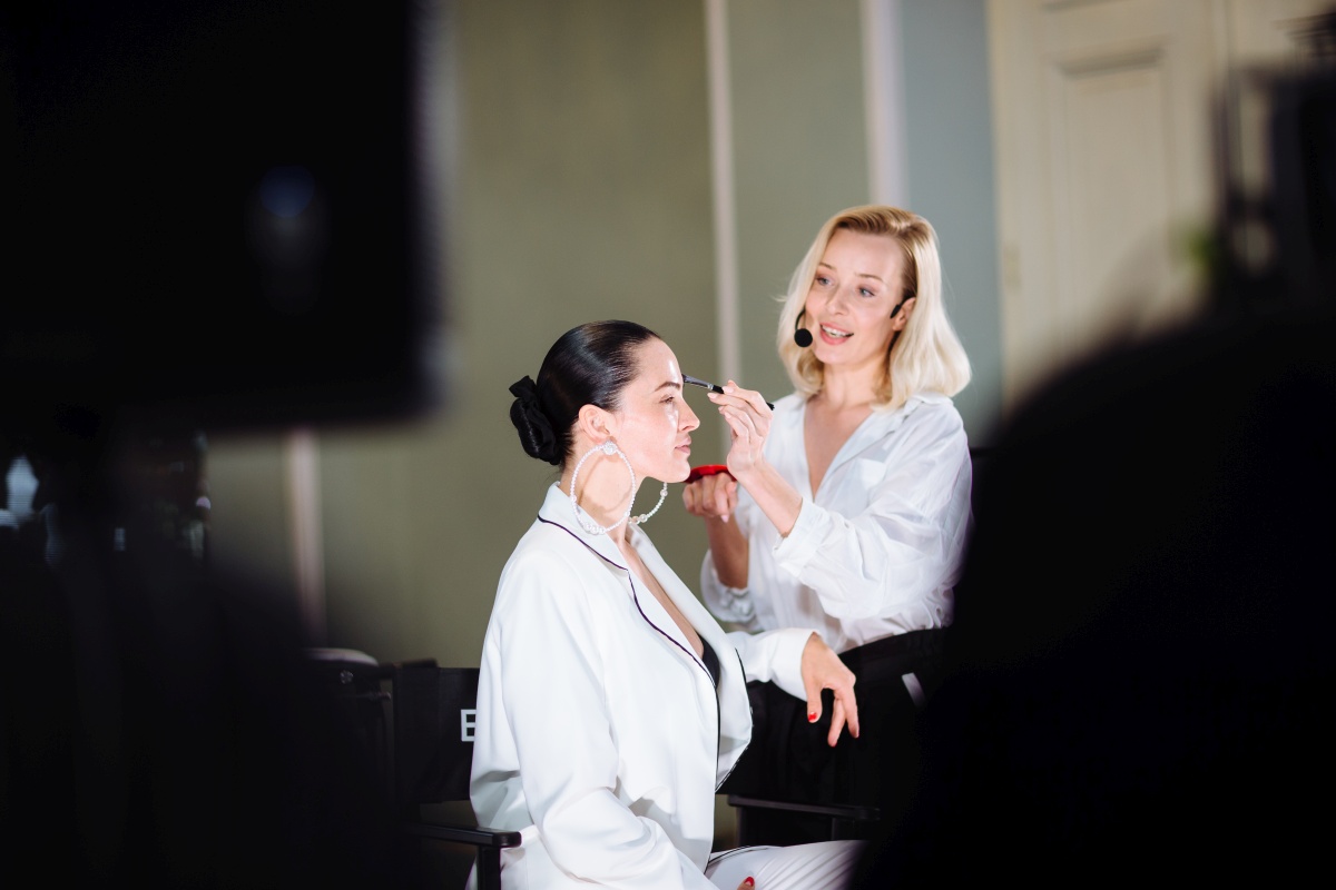 Гостей мероприятия ожидали две красочные фотозоны и, конечно же, мастер-класс по созданию быстрого и эффектного макияжа на каждый день. Даша Астафьева с удовольствием делилась впечатлениями от использования новых декоративных продуктов с редакторами и блогерами. Атмосферу вечера создавал бальный зал академии искусств и классическая музыка, а также просекко и легкие закуски.