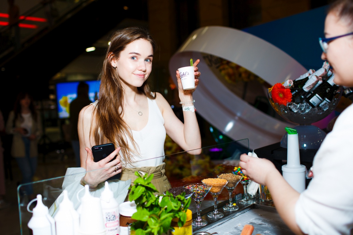 На мероприятии гостям предлагали игристые напитки и «жареное» мороженое, а также была возможность пройти тест на уровень увлажненности кожи. Эксперты бренда подбирали всем желающим тестеры продуктов Kiehl‘s и проводили ликбез по уходу за собой.