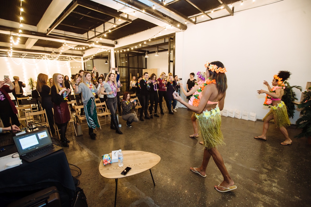 Гостей мероприятия ждала вечеринка в гавайском стиле, ожерелье из экзотических цветов и зажигательный танец хула. Также все фруктовые экстракты, презентованные в новой солнцезащитной коллекции, были представлены в виде угощений. В непринужденной экзотической атмосфере была возможность пообщаться с коллегами и лично задать вопросы Майе Дадеевой.