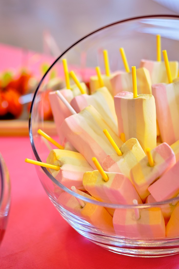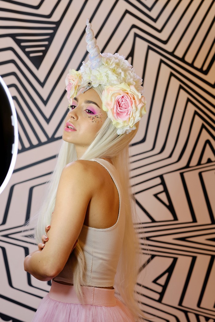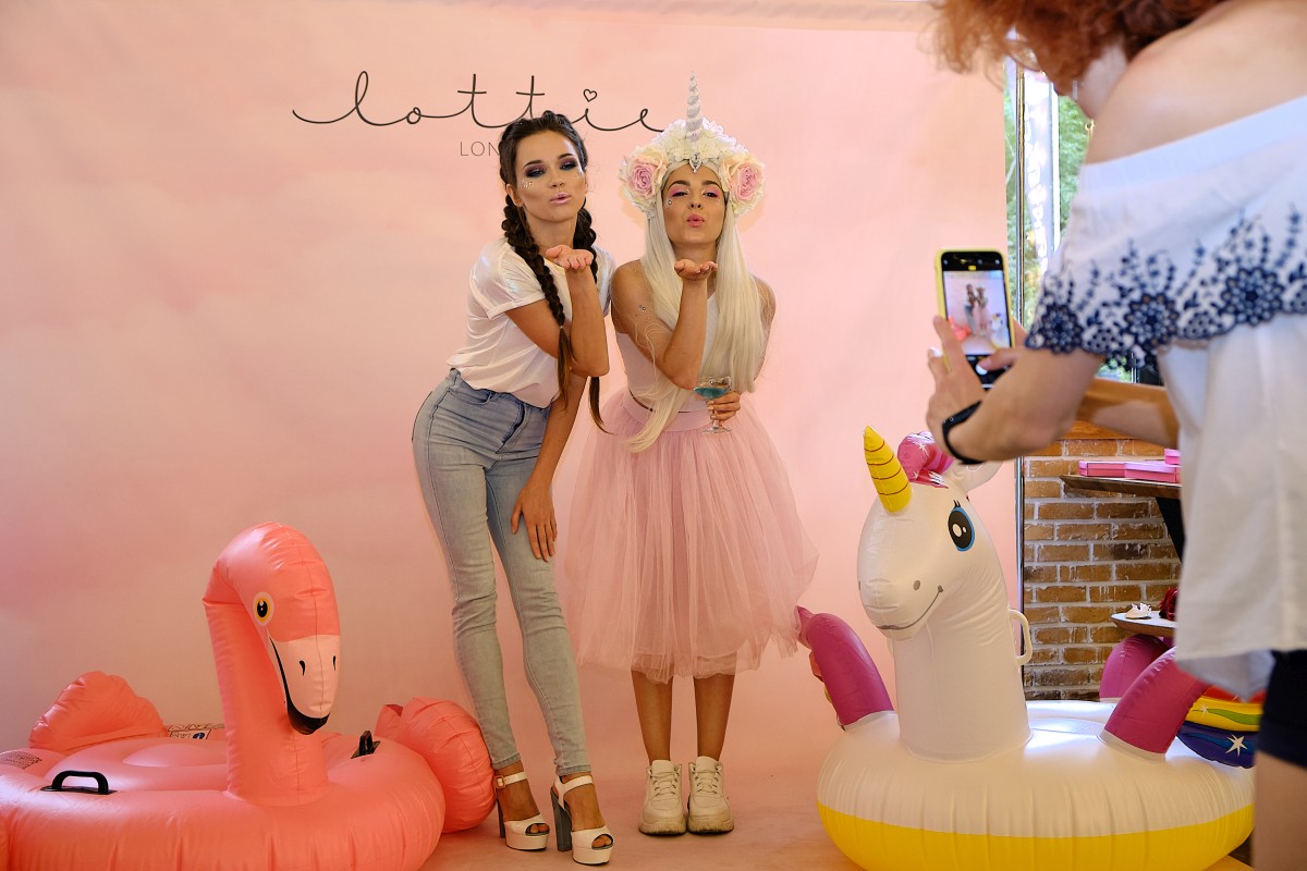 Гостей мероприятия ждала и практическая часть, была возможность оценить новую косметику Lottie London на трех моделях, которые превратились в русалку, нимфу и единорога. Фотозона была представлена с надувными кругами для купания, а среди угощений можно было найти зефир, по цвету и форме напоминающий радугу.