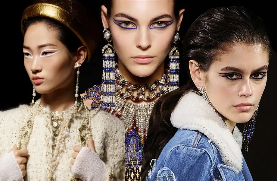 В этом году Карл Лагерфельд показал новую коллекцию Chanel Métiers d’Art в Нью-Йорке, в культовом месте – The Metropolitan Museum of Art, которое на время шоу превратилось в город Древнего Египта. Линейка полностью посвящена древнеегипетской роскоши, начиная от золотых вставок и заканчивая beauty-образом. Лючия Пика, креативный директор по макияжу Chanel, полностью переосмыслила излюбленный макияж египетских цариц — раскосые черные стрелки, превратив их в изящные линии разных оттенков. Стоит отметить, что традицию подчеркивать глаза как женщинам, так и мужчинам сохранил также звездный гость, рэпер Фаррелл Уильямс, превратившись в современного фараона. Современные стрелки Древнего Египта легче повторить, нежели классику Нефертити и Клеопатры, достаточно вооружиться разноцветным лайнером-фломастером и слегка отступить от линии роста ресниц. Спасибо, Лючия, за отличную идею для новогоднего макияжа!