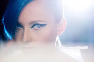 Макияж оказался не менее смелым – веки моделей были оформлены черными и синими театральными стрелками, уходящими к вискам.