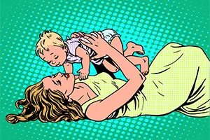 Mother child childhood motherhood happy pop art retro style