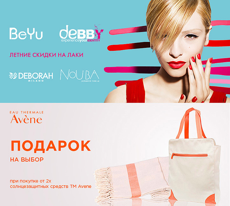 На этой неделе действуют скидки на продукцию Ninelle (35%), BeYu, Nouba, Euphytos, Deborah (20% и 25%). Всех покупателей продукции Hempz, Declare, Avene, Sholl ждут гарантированные подарки. Стартовала акция Brandy Sale – до 40% скидки на парфюмерию. Подробности о каждой акции, список марок и стоимость продуктов уточняйте на сайте. Makeup.com.ua