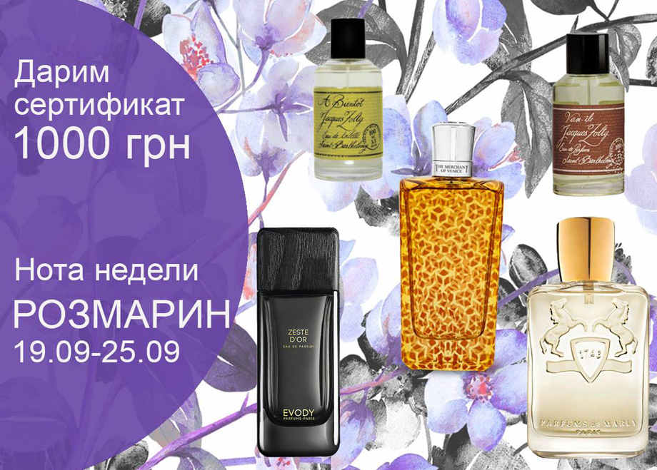 В магазине действует акция «Нота недели»: все покупатели, совершившие покупку аромата с нотами выбранного на неделе ингредиента, гарантированно получат сертификат на покупку номиналом 1000 грн. Подробности читайте на сайте. Parfumburo.ua