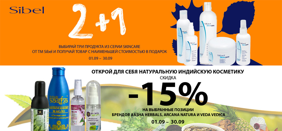 В магазине действуют акция на продукцию Sibel: при покупке двух единиц, третью вы получаете в подарок. Действует скидка 15% на продукцию брендов Aasha Herbals, Arcana Natura, Veda Vedica. Sisters.com.ua