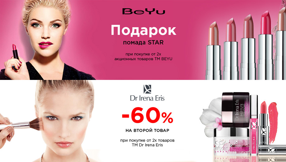 В онлайн-магазине действует акция Brandy Sale – скидки до 50% на декоративную косметику и парфюмерию. Действуют скидки 20% – на Valmont, Maybelline, Garnier, L’Oreal, Piel Cosmetix, 25% – на Mades Cosmetics, 30% – на Batiste, Clinique, Ninelle, 60% – на Dr Irena Eris, 80% – на весь ассортимент лаков для ногтей. Гарантированные подарки ждут всех покупателей продукции Estel, BeYu, Euphitos, NoUBA, Hempz, Lirene, Vichy, Qiriness, Styx Naturcosmetics, Cutrin, AHAVA. Подробности о каждой акции, список марок и стоимость продуктов уточняйте на сайте. Makeup.com.ua