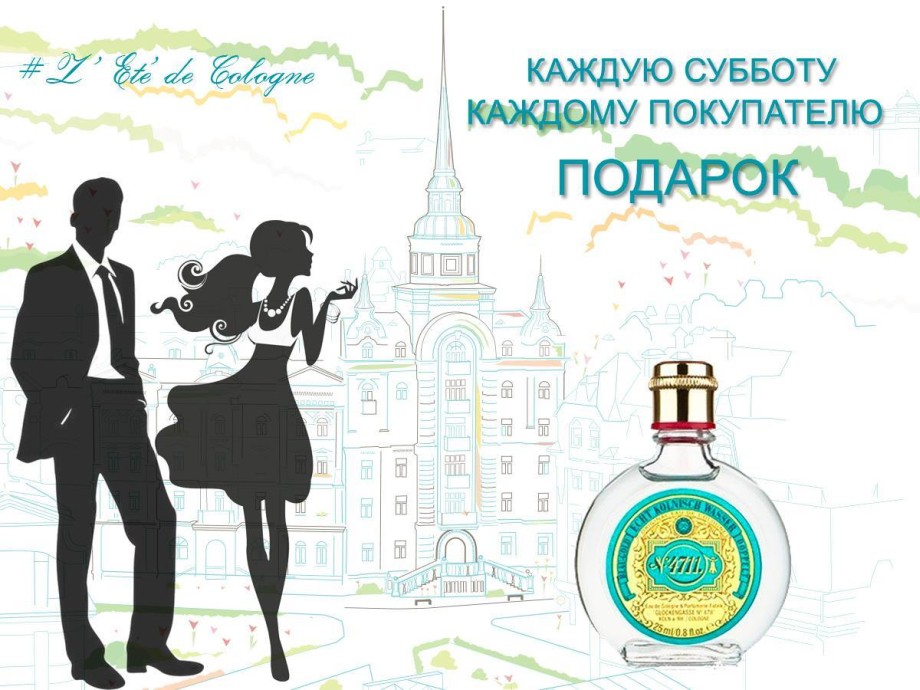 В галерее действует акция: все покупатели, совершившие покупку в субботу (до конца лета) гарантированно получают в подарок флакон 4711 Original Eau de Cologne. Действует акция «Нота недели»: при покупке определенного аромата магазин дарит сертификат на покупку номиналом 1000 грн. Подробности читайте на сайте. Parfumburo.ua