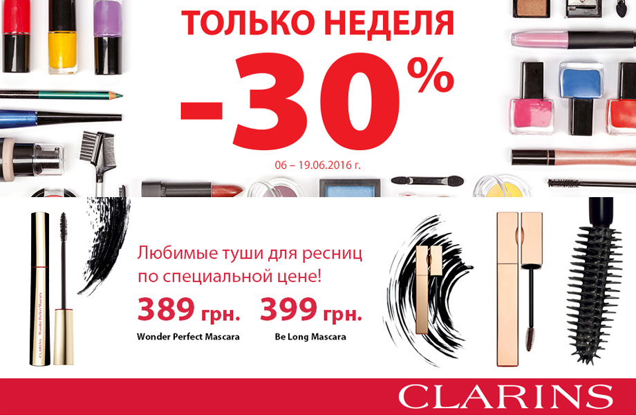 До 19 июня действует скидка 30% на косметику и парфюмерию Yohji Yamamoto, Marc Jacobs, Roberto Cavalli, Dr. Sebagh, Make up Factory, Orlane, Ayres, Skincode, ANNY, Moana, Institut Arnaud, Alfaparf, Shakira, United colors of Benetton, Elie Saab, Gemology, Methode Jeanne Piaubert, Dunhill, Jimmy Choo, Trussardi, Loewe, Lancome, June Jacobs, Gosh, Shiseido. Скидка по дисконтной карте не суммируется. До 30 июня действуют специальные цены на ароматы Niji For Her и Niji For Him от Annayake объемом 100 мл. До 12 июня при покупке линии ENERGIE DE VIE от Lancome на набор из трех продуктов действует специальная цена 3499 грн.¬¬ До 12 июня при покупке продукта для лица марки QIRINESS подарок – дорожный набор. Также до 20 июня на туши Clarins действует специальная цена. При покупке двух товаров Make Up Factory, Clarins и/или Euphytos вы гарантированно получите подарок. До 19 июня при покупке продукции Nouba на сумму от 1000 грн (с учетом всех предоставленных скидок) подарок – помада Millebaci в оттенке 07. Подробности – на Letu.ua и Brocard.ua.