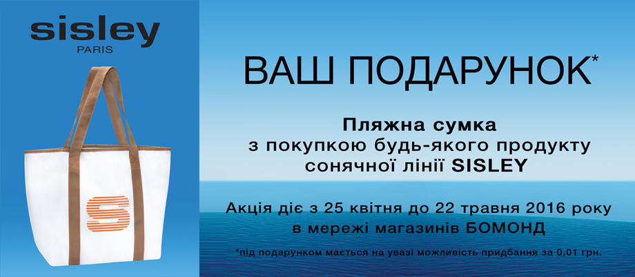 До 22 мая при покупке любого солнцезащитного средства, вы получите пляжную сумку в подарок. Косметика Sisley представлена в магазинах сети Bomond и Aromateque concept store.