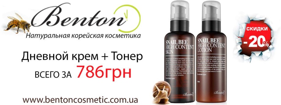 В онлайн-магазине корейской косметики действует скидка 20% при покупке тонера и дневного крема. Также в подарок вы получите бамбуковую коробочку для хранения косметики. Bentoncosmetic.com.ua