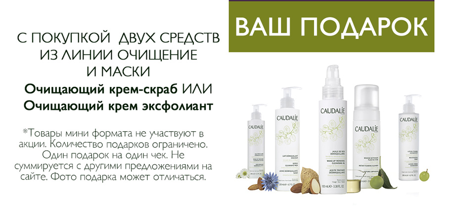 Начиная со вчерашнего дня и до окончания подарочного фонда в онлайн-магазине Caudalie действует ряд акций. При покупке продукта из программы Vinosource вы получите стильную косметичку в подарок. Акция не распространяется на продукт по уходу за кожей вокруг глаз Vinosource Крем для глаз S.O.S. При покупке двух средств из линии «Очищение» и маски в подарок получите очищающий крем-скраб или крем-эксфолиант. Товары мини-форматов не участвуют в акции. На один чек – один подарок. Акция не суммируется с другими акциями. Caudalie.com.ua.