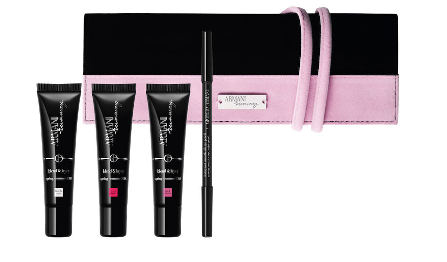 Три оттенка Armani Blend & Layer и черный водостойкий карандаш с шелковистой текстурой Waterproof Smooth Silk Eye Pencil вошли в лимитированный набор Armani Blend & Layer Couture Kit. Все продукты упакованы в черно-розовую косметичку, которая гармонирует с одеждой из весенне-летней колекции.