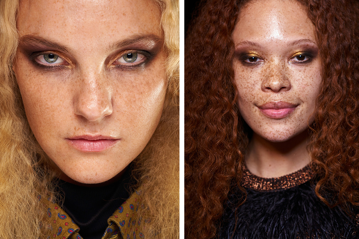 Про тот неумолимый факт, что мода циклична, напоминает нам сам Майкл Корс, который в новой коллекции осень–зима 2019 вспоминает бурную молодость 70-х. Диско-пол, клуб Studio 54 и крылатая фраза «секс, наркотики, рок-н-рол» стали главными вдохновениями для дизайнера, который дал новую жизнь шелковым платьям, расклешенным джинсам и лаконичным костюмам. В культовом клубе Studio 54 могли отдыхать как звезды первого эшелона, так и простые парни с улицы, это оставило заметный отпечаток на коллекции и beauty-образах моделей, разнообразие цветов и текстур на любой вкус. Базовый макияж представляет собой светоотражающий тон, прорисованную линию бровей и дымчатый smoky eyes в коричнево-золотом оттенке. Стоит заметить, что в макияже глаз первую скрипку играет рассыпчатый глиттер, который так любили в 70-х, и к которому с осторожностью относятся девушки сейчас. Опять визажисты отказываются от хайлайтера, румян и помады! Укладки делятся на два типа: гладкие и низкие пучки с прямым пробором и накрутка-гофре, каждый делает выбор сам. Некоторым моделям подготовили особые beauty-образы, к примеру, фиолетовые тени с шиммером и отсутствие туши. Очень в стиле 70-х!