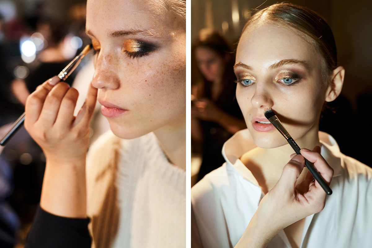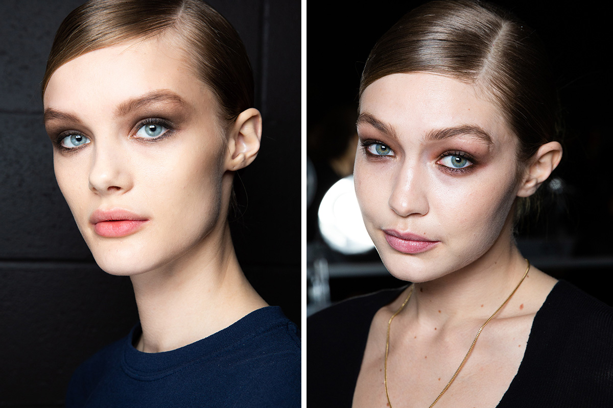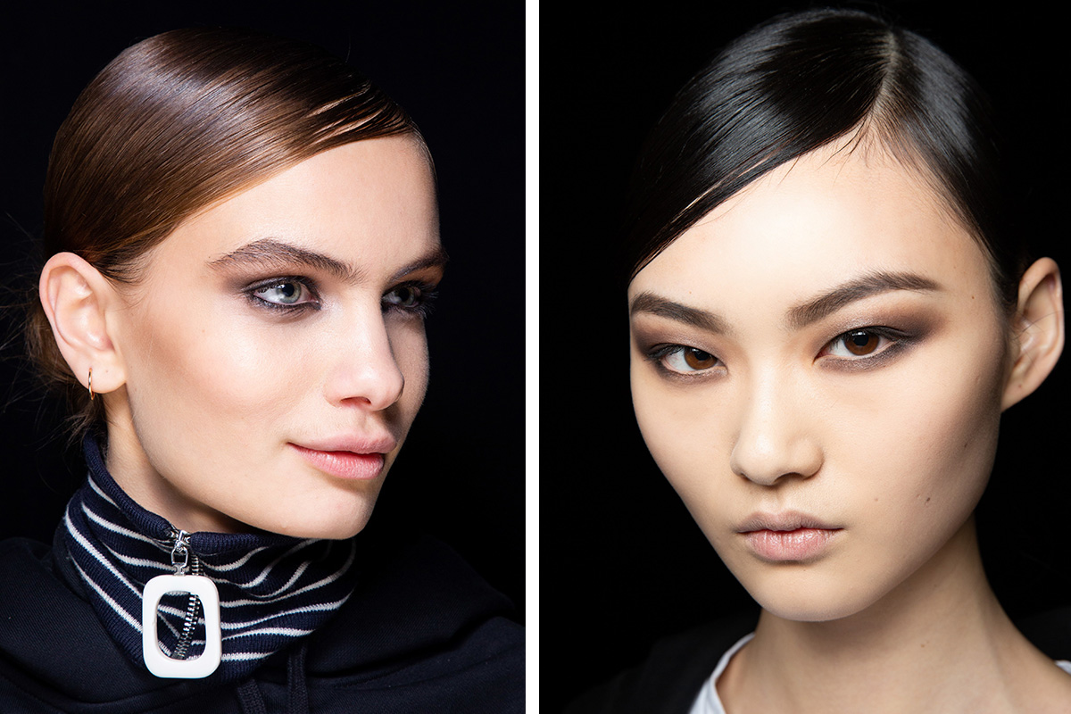 По традиции открывал Нью-Йоркскую неделю моды показ модного дома Tom Ford, для которого элегантность и дерзкая сексуальность стали ключом к успеху. Коллекция сезона осень–зима 2019, естественно, не стала исключением, скорее наоборот – это шоу-манифест фирменных костюмов и силуэтов из 90-х. Искусственных мех, атлас и бархат стали главными текстурами коллекции, которые нашли свое отражение в beauty-образах моделей показа: лохматые брови, глянцевые укладки и матово-коричневые smoky eyes. Стоит обратить внимание, что визажисты отказались от хайлайтера, румян и помады в пользу фарворово-белоснежной кожи. Что касается прически, то все модели, как один, имели низкий пучок, косой пробор и глянцевый, напомаженный финиш — просто и очень нарядно. Главными продуктами для создания макияжа стали: пудровый карандаш для бровей, черная тушь и палитра матовых теней, включающая в себя песочные и шоколадные оттенки. Завершая beauty-образ, визажисты слегка проходили бронзирующей пудрой по скуловой кости, но это вполне можно упустить.