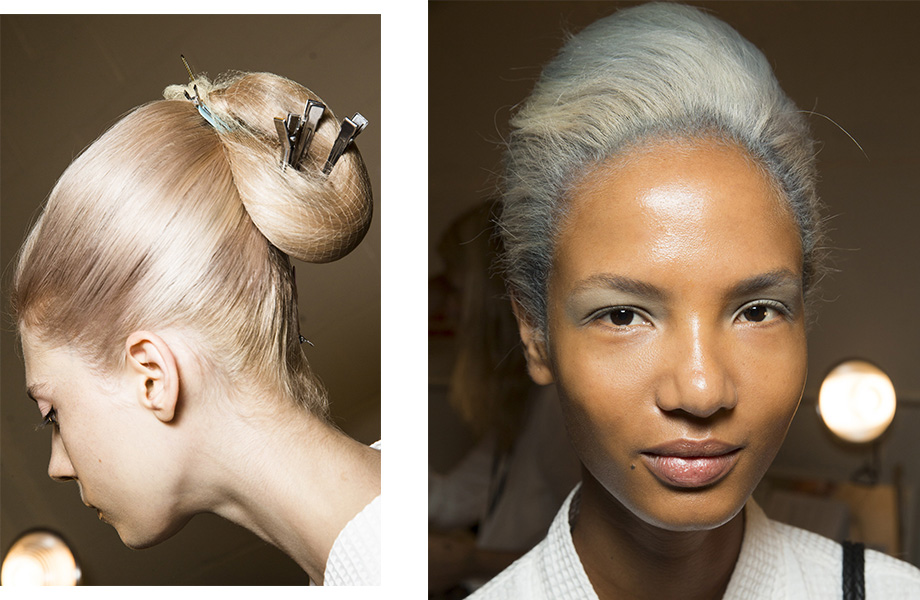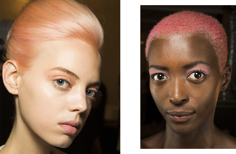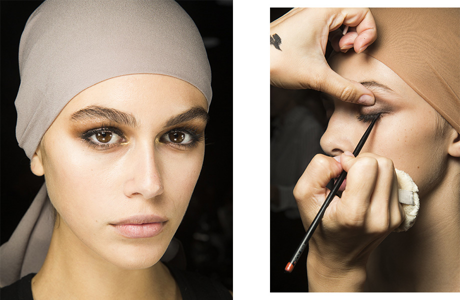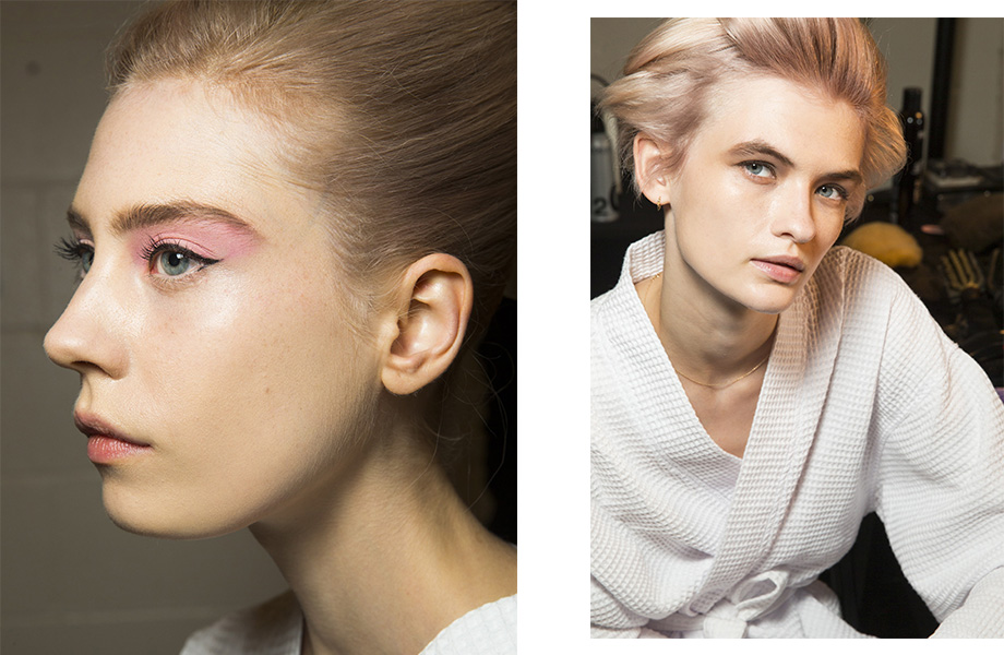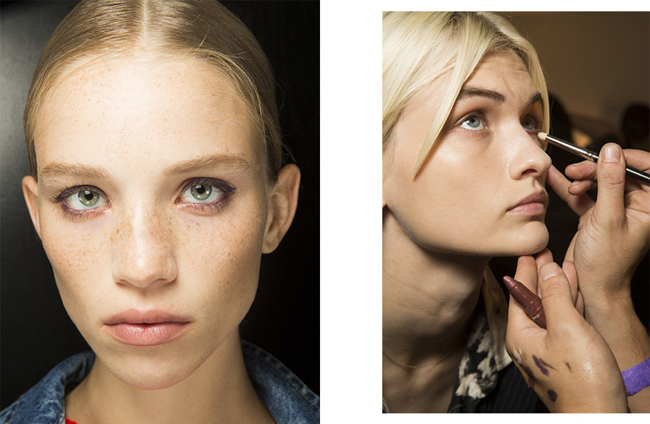 Несмотря на сомнительные финансовые перспективы бренда Marc Jacobs, дизайнер сезон к сезону представляет самые красочные шоу на Неделе моды. На этот раз акцент был сделан на новое прочтение бурных 80-х и демонстративную гиперболизацию. За макияж моделей отвечал креативный директор Marc Jacobs Beauty Диана Кендал, которая предложила нанести тени акварельных оттенков на все подвижное веко вплоть до бровей, густо прокрасить ресницы, и завершить образ небольшой черной стрелкой. Дополнить beauty-образы необычной прической взялся бренд Redken во главе с Гвидо Палау и Джошем Вуд. Решение было гениальным — продолжить акварельный цвет теней на собранных объемных волосах. И если повторить такую прическу — задание не для всех, акварельные тени сейчас представляют почти все топовые бренды.