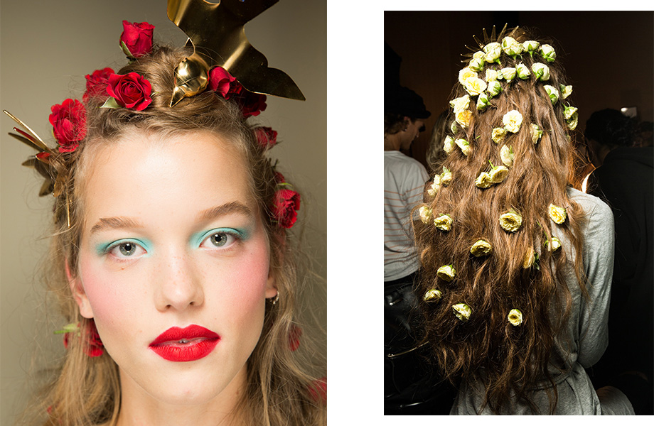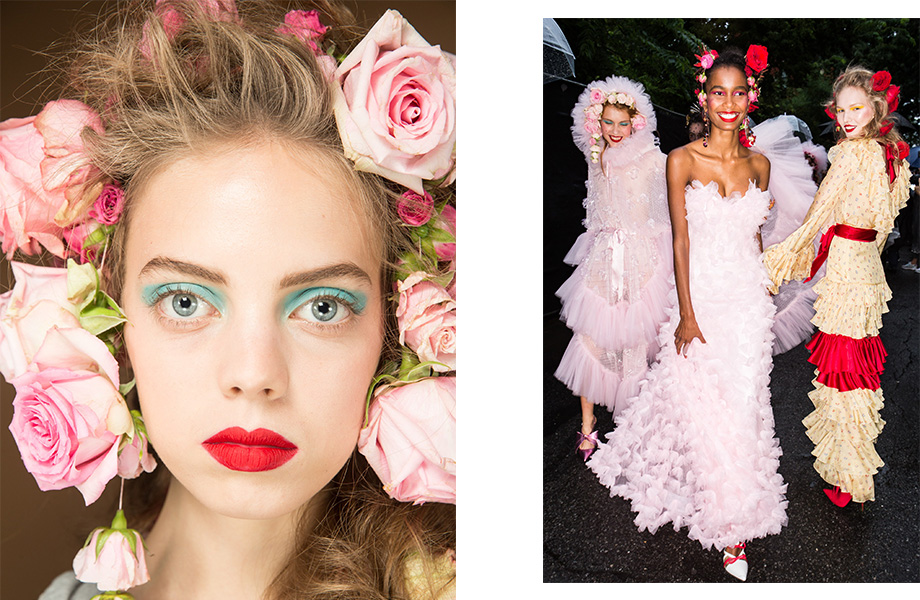 Одним из самых ожидаемых шоу стал показ сестер Малливи, которые представляют бренд Rodarte. Дизайнеры предлагают в новом весенне-летнем сезоне почувствовать себя сказочной принцессой или лесной нимфой, сошедшей со страниц иллюстрированных книг. Живые цветы в волосах, пастельные оттенки на веках и ярко-алая помада на губах стали ключевыми beauty-приемами показа. Для создания более театрального образа стоит нанести розовые румяна и отказаться от туши для ресниц. И пускай это не самый «носибельный» образ на каждый день, его стоит примерить хотя бы раз за грядущий сезон.