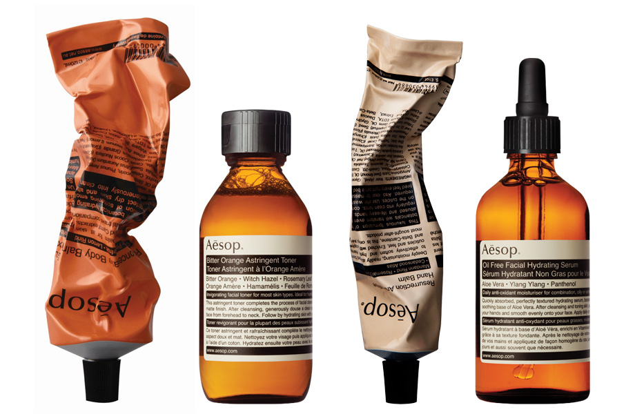 «Продуманный дизайн улучшает нашу жизнь», – декларирует команда архитекторов, создающих дизайн магазинов австралийского бренда Aesop и всех предметов, которые в них находятся. По тому же принципу однажды была разработана и дизайнерская упаковка для косметики: ничего лишнего – только аптечные бутыли и банки из коричневого стекла с лаконичной черно-белой этикеткой, на которой и названия-то бренда нет, только наименование и состав средства, набранные шрифтом Optima Medium. Как говорит основатель бренда Дэннис Пафитис: «Aesop является частью небольшого движения, которое лучше всего можно описать как парадигму Muji – Hermes».