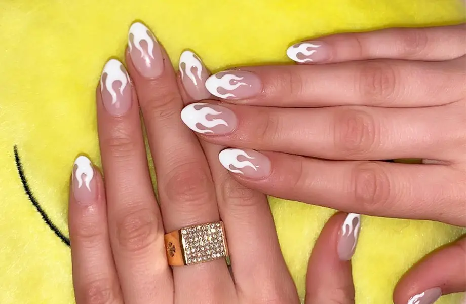 Если в вас живет художник, и вы просто обожаете рисовать различные узоры на ногтях, попробуйте нарисовать языки пламени с помощью тонкой кисти. Окуните ее в белый лак и творите.