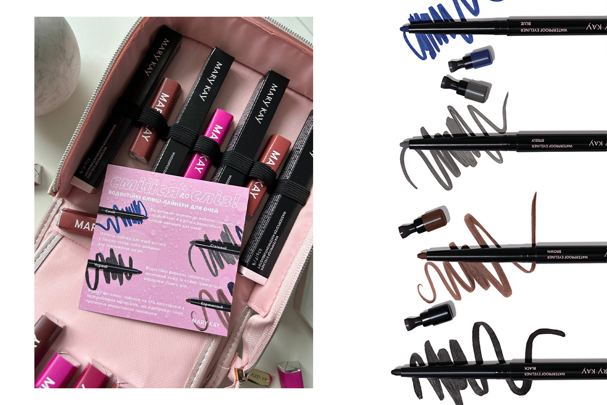 С помощью новинок для макияжа глаз Mary Kay предлагает нам рисовать выразительные стрелки и растушеванные линии, обещая устойчивость, комфортное нанесение благодаря кремовой текстуре и легкий контроль толщины линии интенсивностью нажатия, увлажнение кожи и защиту от шелушения или пересушивания благодаря формуле с маслом шиповника.