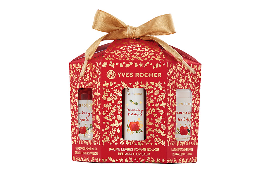 Если хочется создать уют и праздничное настроение в доме, стоит обратить внимание на рождественскую косметическую коллекцию Holiday Ornaments от Yves Rocher, которая включает в себя как парфюмированые свечи, так и классические наборы в красочных упаковках. Один из них и привлек наше внимание — это сет Holiday Ornaments Kit Red Apple, посвященный сочному и сладкому красному яблоку. В подарочный набор, который напоминает домик с окошками, входит четыре мини-средства: крем для рук Red Apple Mini Hand Cream 30 мл, гель для душа Red Apple Scented Shower Gel 50 мл, лосьон для тела Red Apple Scented Body Lotion 50 мл и бальзам для губ Red Apple Nourishing Lip Balm 4,8 г. Главными компонентами, объединяющими все продукты сета, стали экстракты яблочной и васильковая воды, а также эфирные масла апельсина, ванили и пачули. Приобрести можно на официальном сайте и в сети магазинов бренда, ориентировочная цена 410 грн.