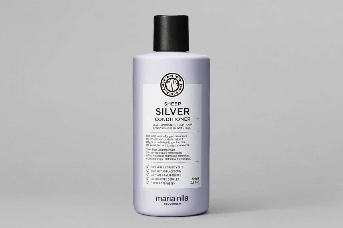 Ее любимыми средствами от желтизны волос сейчас являются шампунь, бальзам и тонирующая маска для светлых волос от шведского бренда Maria Nila. На ее ванной полке красуется вся линейка бренда для поддержания холодного блонда: Sheer Silver Shampoo, Sheer Silver Conditioner и Sheer Silver Masque.