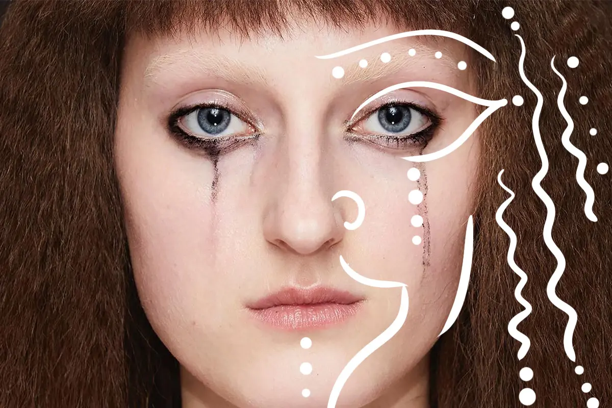 Главной фишкой макияжа на показе Gucci AW’20 стала растекшаяся тушь, то ли от слез, то ли от непогоды. Более того, таким незамысловатым образом Томас де Клайвер хотел привлечь внимание к новинке Gucci Beauty — дебютной туши для ресниц Mascara L’Obscur. «Сегодня мы неожиданно используем тушь для ресниц. Повторить такой бьюти-образ просто и для этого не нужно слез! Ставим крапинку на нижнем ряде ресниц, затем при помощи ватной палочки, смоченной водой, прорисовываем разводы разной ширины и длины», — рассказывает Томас. Такой макияж опять нас уносит в детство, где капризные девочки плачут из-за каждой мелочи.